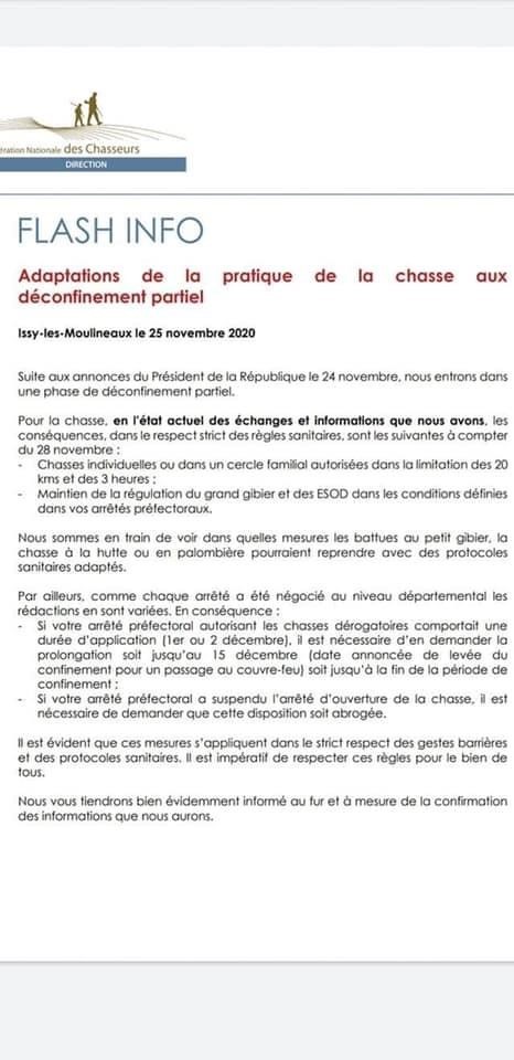Dernières infos : Une Commission Départementale de la Chasse et de la Faune Sauvage se réunira Mercredi 4 Novembre pour…