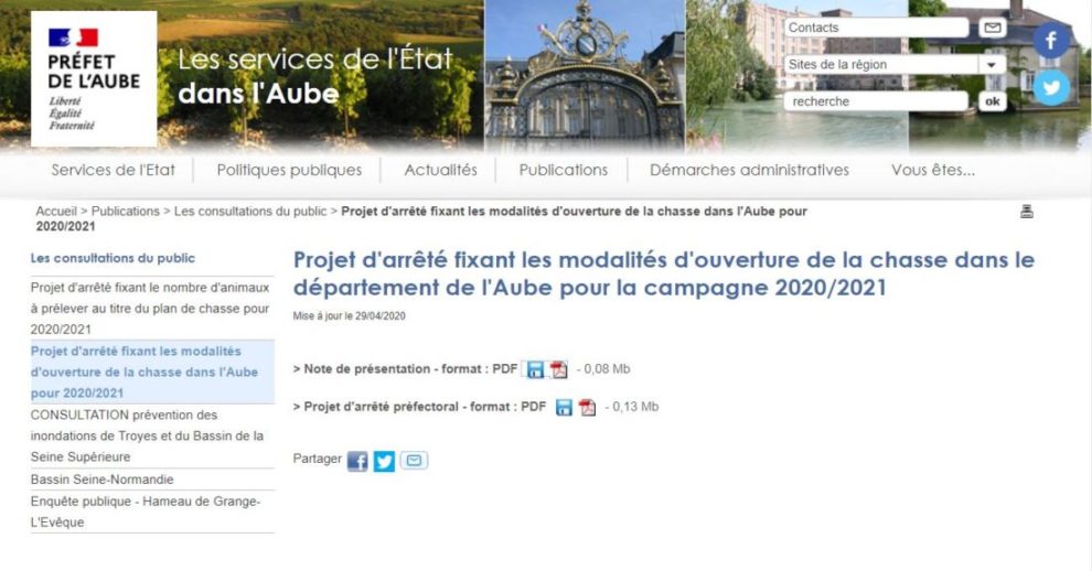 Retrouvez la consultation publique sur l’arrêté d’ouverture et de fermeture de la chasse pour la saison 2020/2021 Cliquez ici